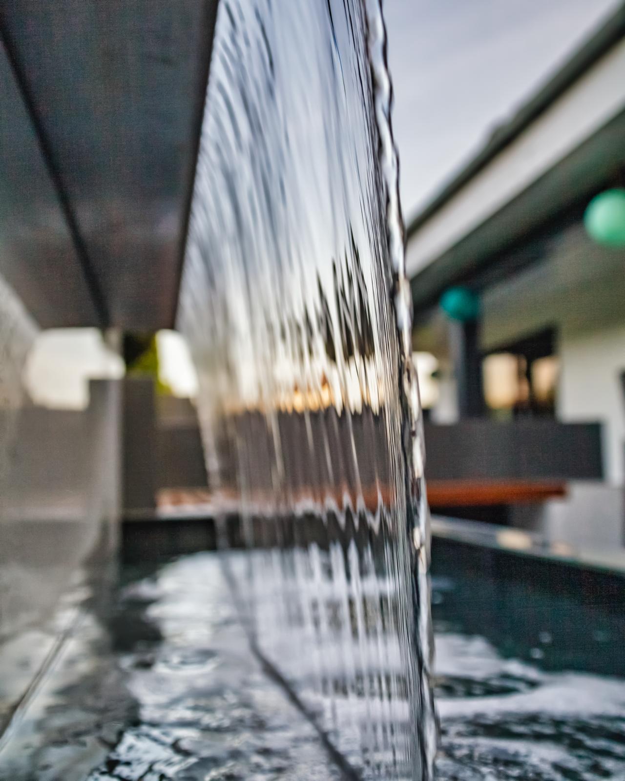 With its wide blade, sheer water cascades smoothly from an extended height to create an illusion of a curtain of water.